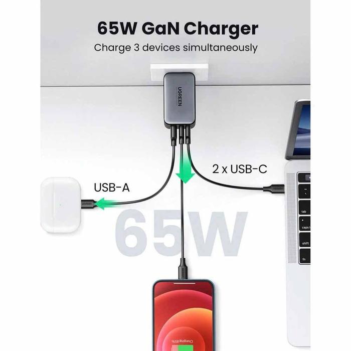 Ugreen Kepala Charger Gan 65W Usb Type C Fast Charging 10335 - 25685B Uno 65W