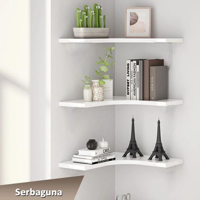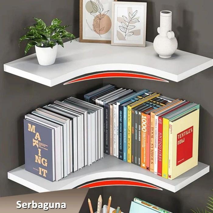 Spacesaver - Lemari Dinding Sudut Gantung Multifungsi Desain Minimalis Modern Untuk Penyimpanan Buku Dan Dekorasi Hemat