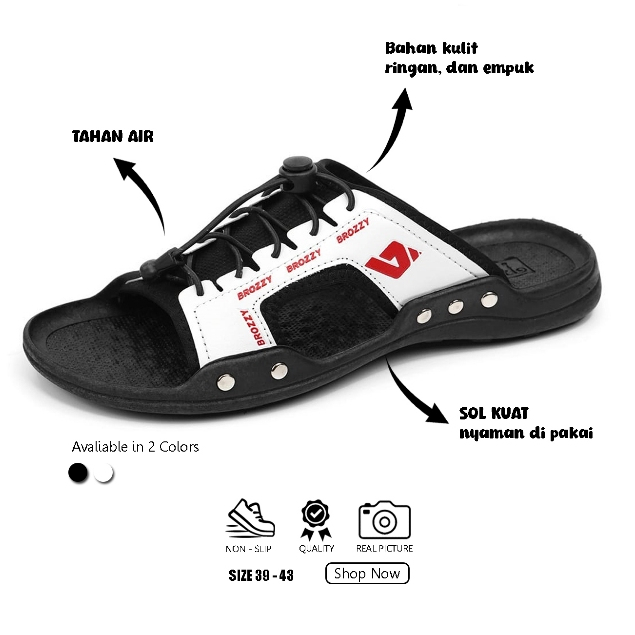 Brozzy For You Sandal Pria B09 Nyaman Slip On Anti Putus Gratis Ongkir Original Tahan Air