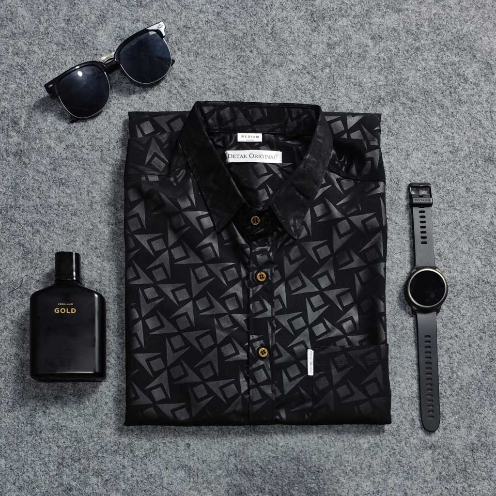 Detak Original Kemeja Embos Sultan Pria Lengan Pendek Motif Kunai Kasual Slim-fit