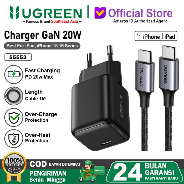 Ugreen Charger Gan Type C Fast Charging For Samsung Ipad Iphone 15 16 17 Pro Max - 1Set Gan-N 20W White
