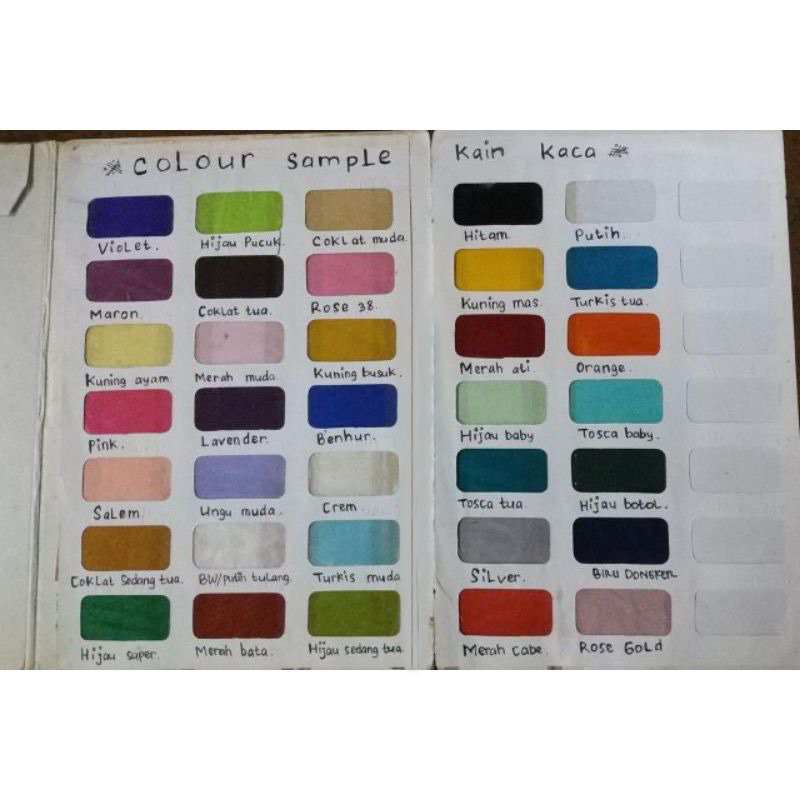 Hitam, Putih, Putih tulang, Silver, Navi, Gold, Maroon, Baby blue, Lilac, Coksu