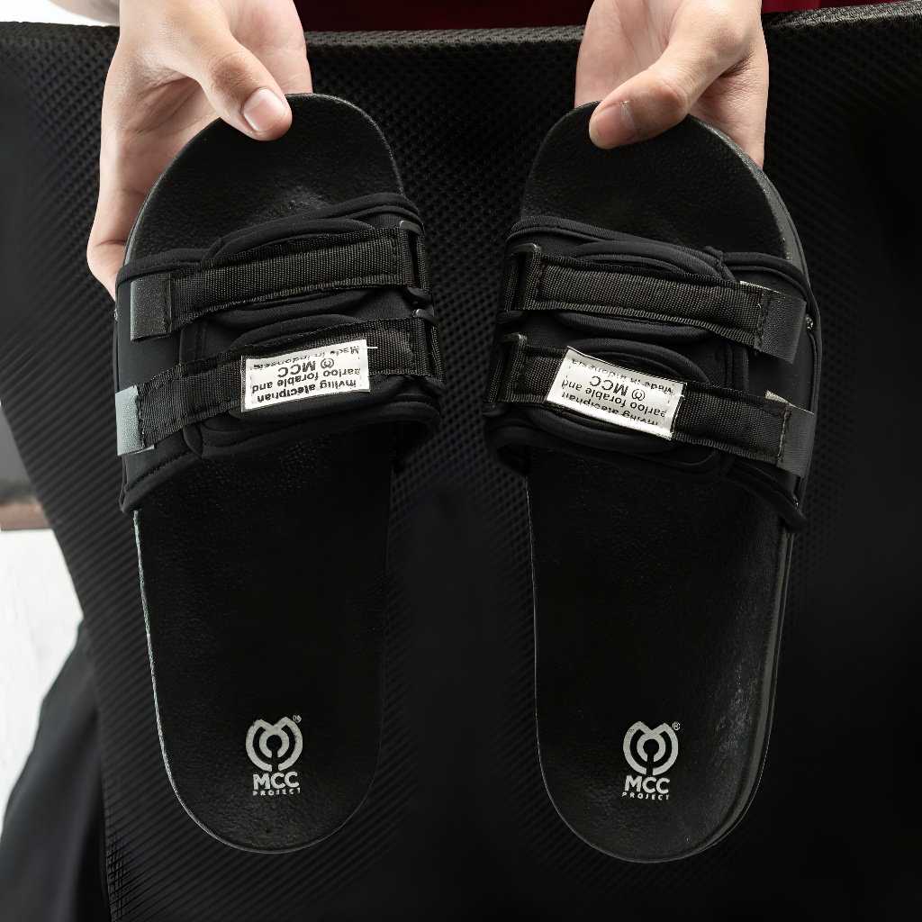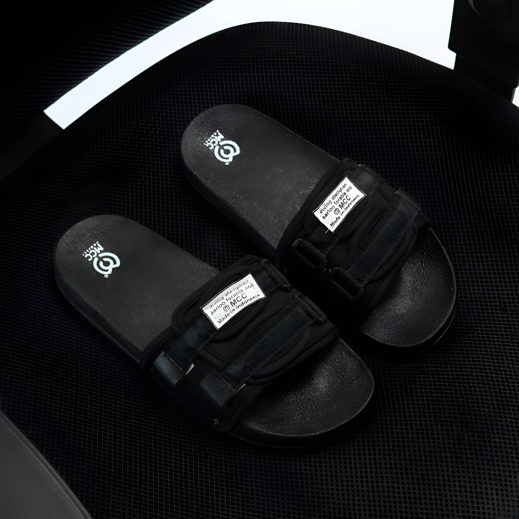 MCC Project Sandal Slop Pria Fashion Oval Black Slip On Dewasa 38-43