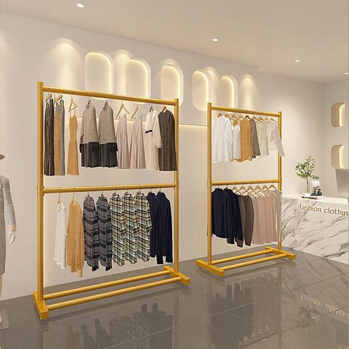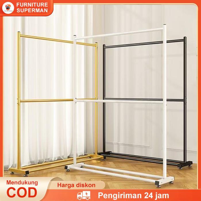 Rak Baju Gantung Berdiri 2 Susun Rak Gantungan Baju Besi Rak Baju Gawang Estetik Stand Hanger 200Cm Pakaian Portable Aes