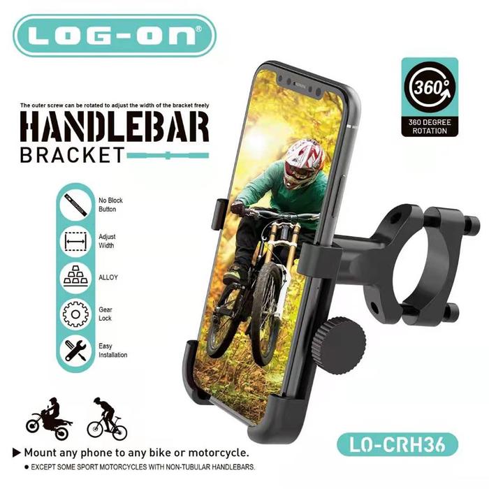 LOG ON HOLDER LO-CRH36 (STANGMotor/SEPEDA) ALUMINIUM ALOY DUDUKAN HP STAND HP Metal Motor Besi - holder