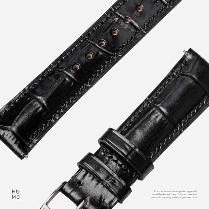 Italian Croco Embossed - Handmade Leather Watch Strap Tali Jam Kulit - Black Std Springbar