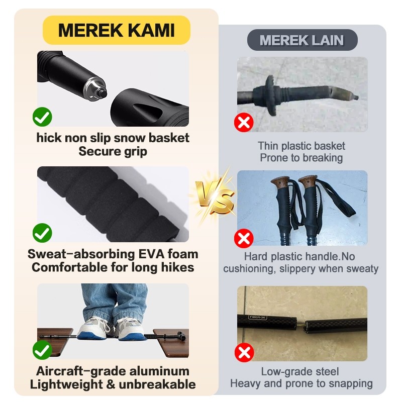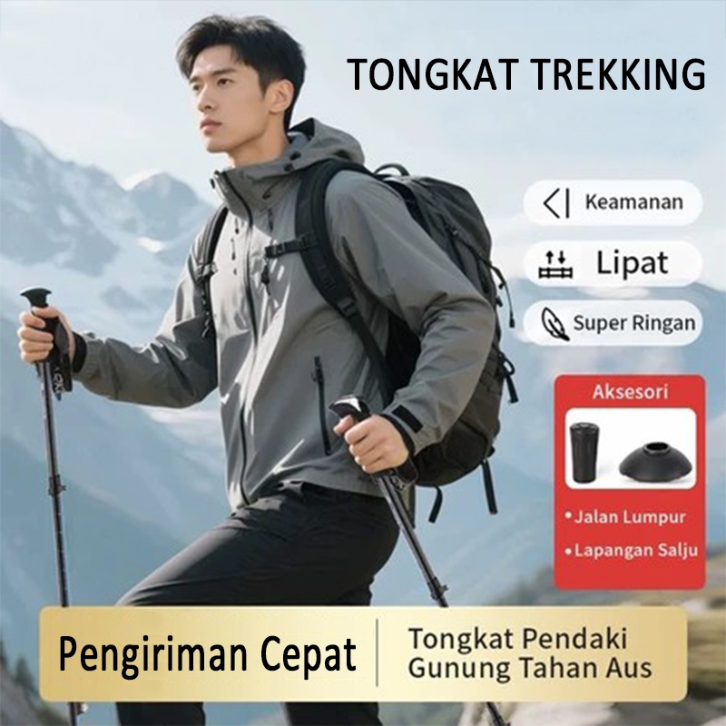 65-135cm Tongkat Gunung Trekking Lipat -Dapat Diatur Panjang Cocok untuk Hiking