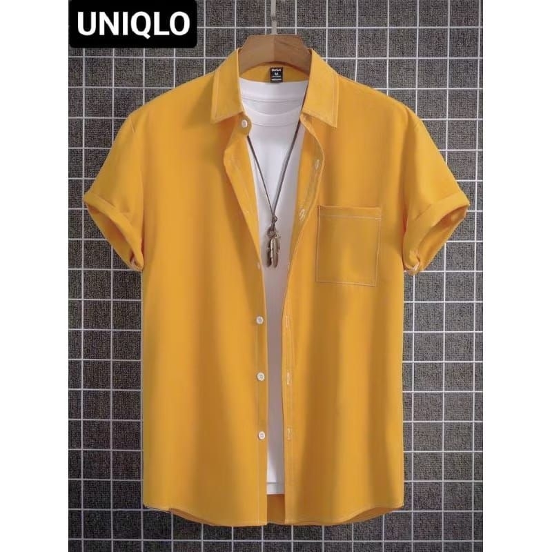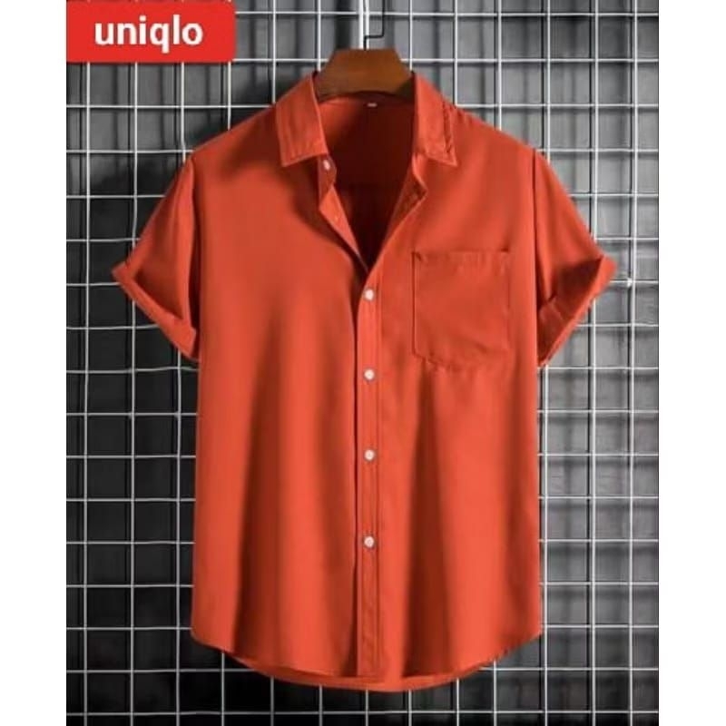 kemeja pria lengan pendek polos uniqlo slimfit terlaris//kemeja pria lengan pendek bahan full katun terbari