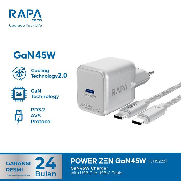 Charger For Iphone 17] Rapatech Power Zen Gan 45W With Avs Technology Charger For Iphone 17 Series With C To C Nylon C