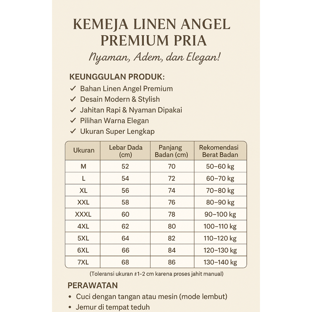Kemeja Linen Angel Pria Jumbo M–7XL | Kemeja Pantai Santai Adem & Stylish Premium Quality