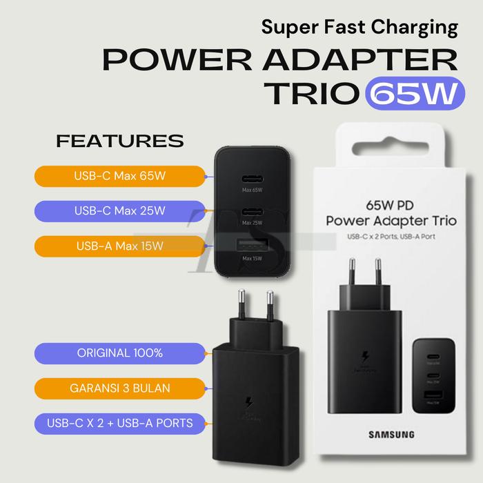 Charger Samsung Power Adapter Trio 65W Pd Super Fast Charging Original