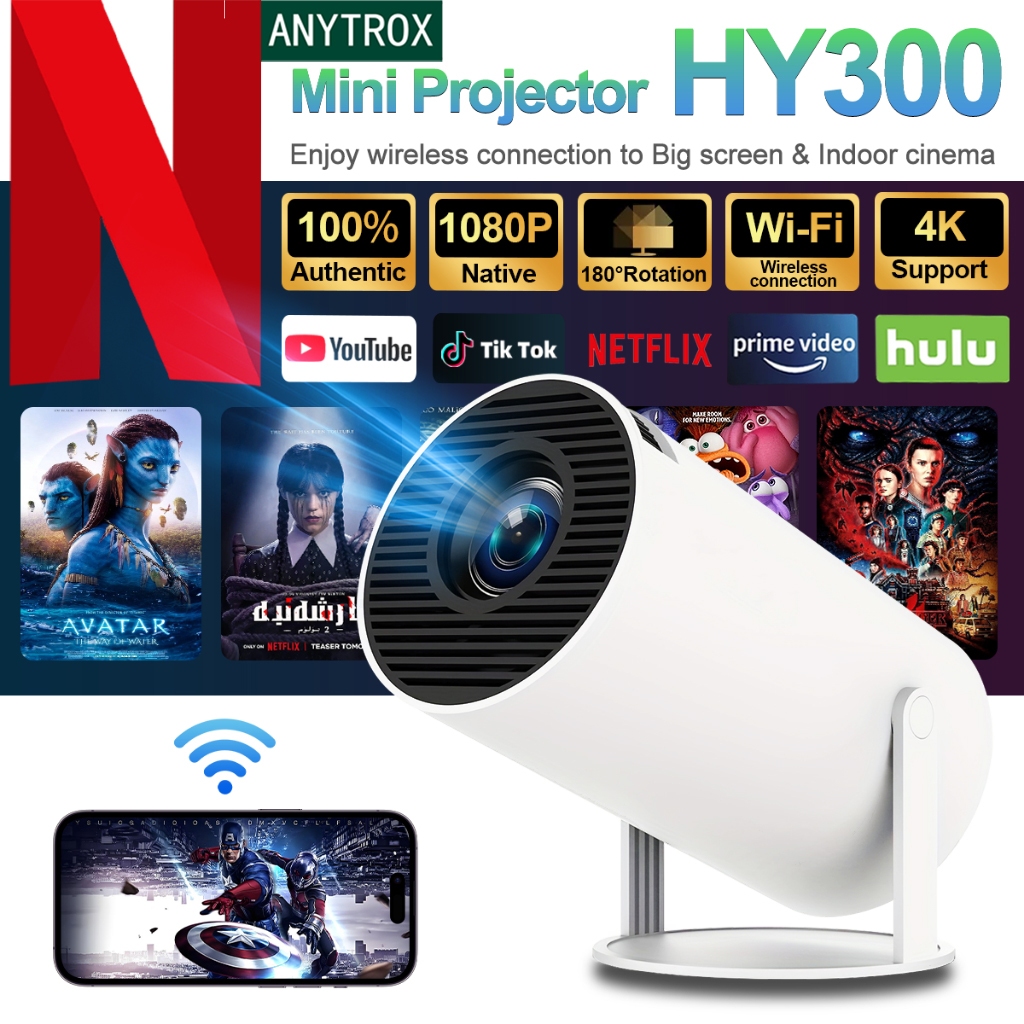 mini Proyektor HY300 Android 11.0 4K UHD Smart Proyektor WiFi6 Bluetooth 5.0 1GB+8GB for Home Cinema/Outdoor