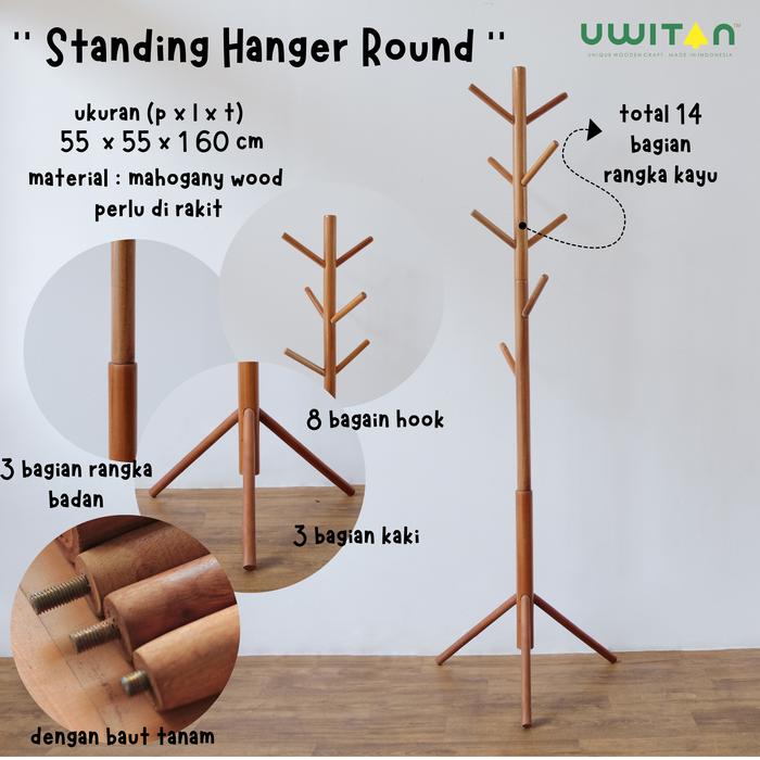 Uwitan Standing Hanger Round – Gantungan Baju 8 Hook Premium Halus Rak Penyimpanan Serbaguna Tas Jaket Topi Coat Mantel
