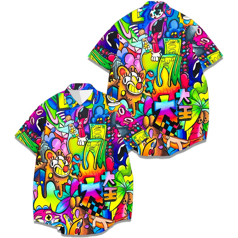 KEMEJA HIP HOP RETRO MUSIM PANAS LENGAN PENDEK MOTIF FULL PRINT DOODLE ART