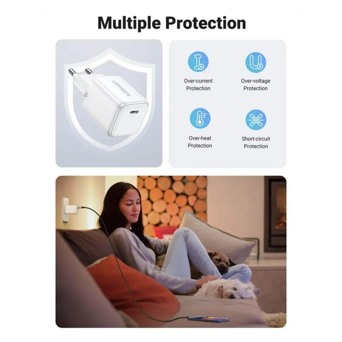 Ugreen Charger For Iphone Fast Charging 20W Pengisian Daya Cepat 30 Menit 65 PERSEN - 20W Black Silicone, Kabel Saja