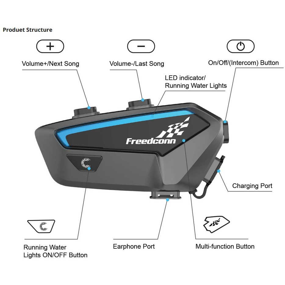 Freedconn FX Intercom Bluetooth Headset 1500M 6-10 Riders