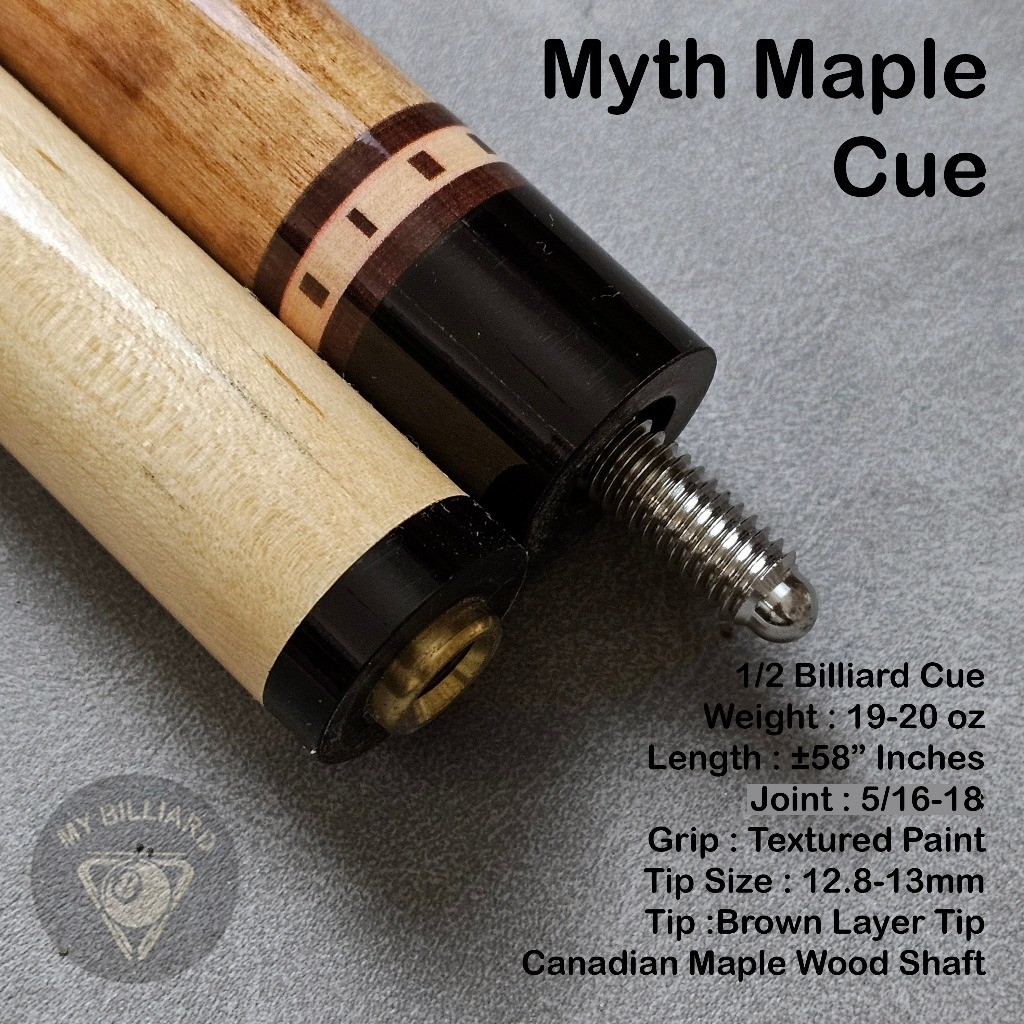 Stick Billiard Myth Cue 12.8 mm Black Brown Cream - Myth Hitam Stik Biliar bilyar 13mm Maple