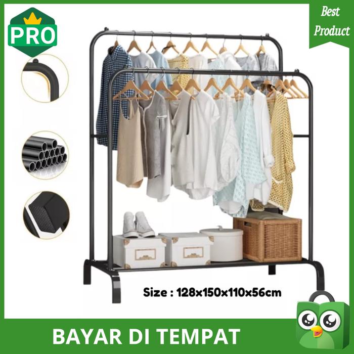 Stand Hanger Gawang Double Gantungan Baju Rangka Besi Kuat - Putih