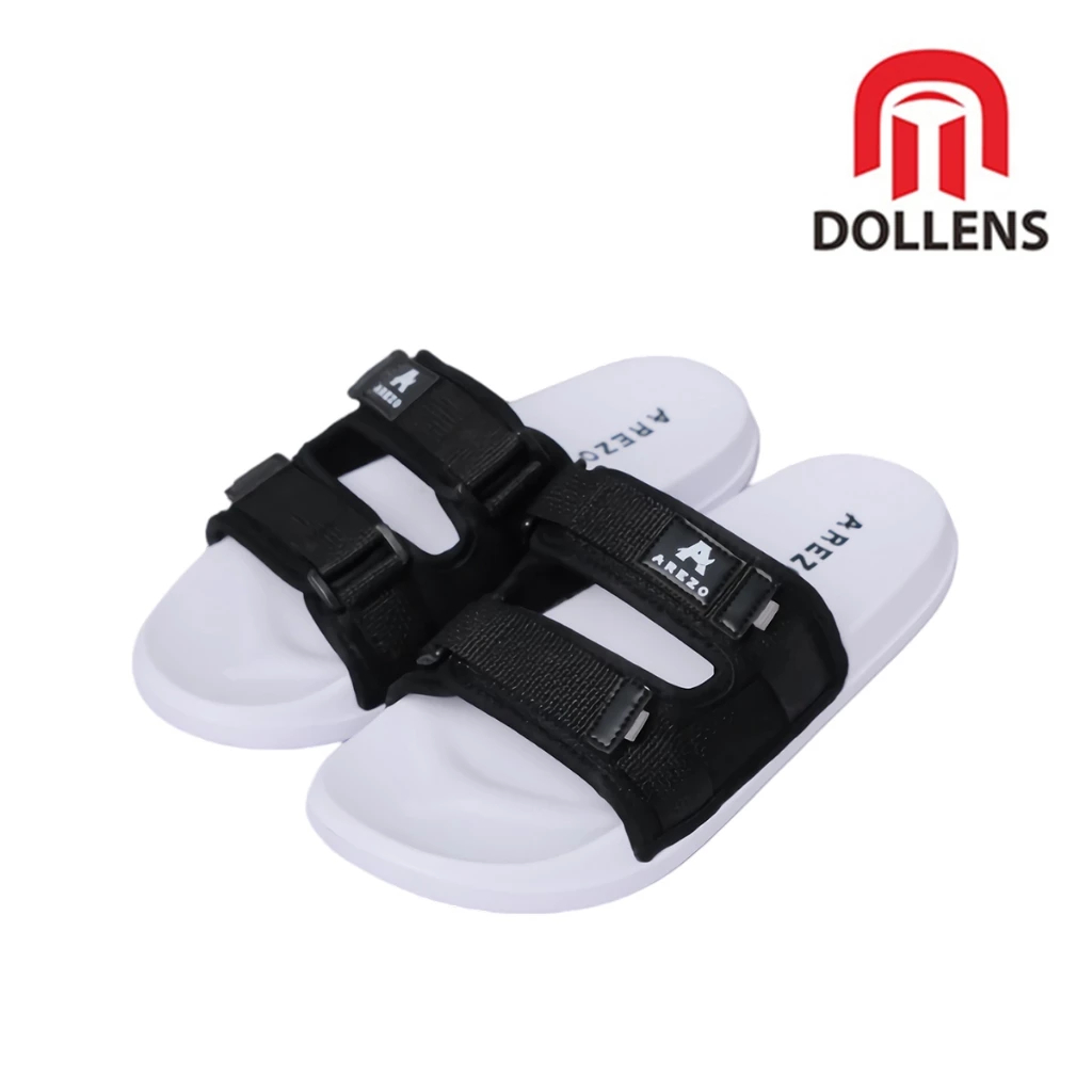 Sandal Slop Pria Distro Strap Aesthetic Arezo - Hitam/Abu-abu/Merah