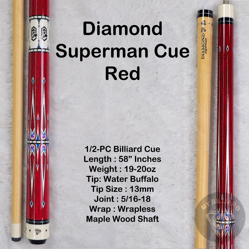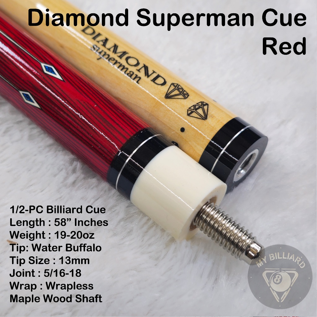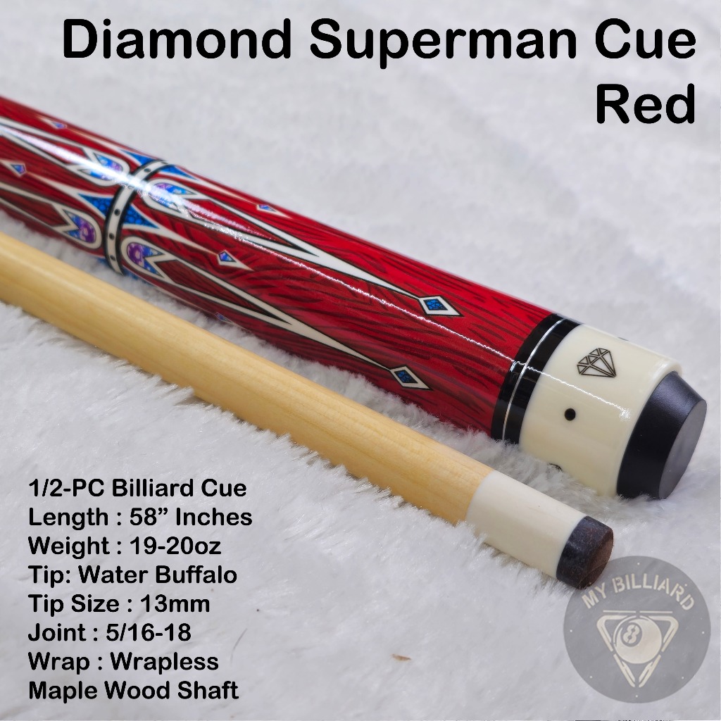 Diamond Superman Red Cue Billiard Stick - New Stik Billiar