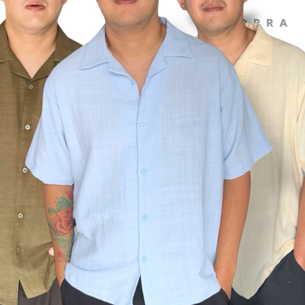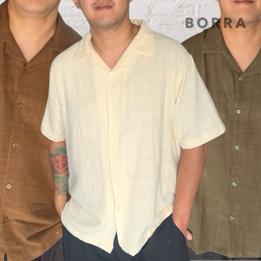 KEMEJA LINEN PRIA LENGAN PENDEK CASUAL KERAH BOWLING ADEM RINGAN Size M - XXXL | BORRA