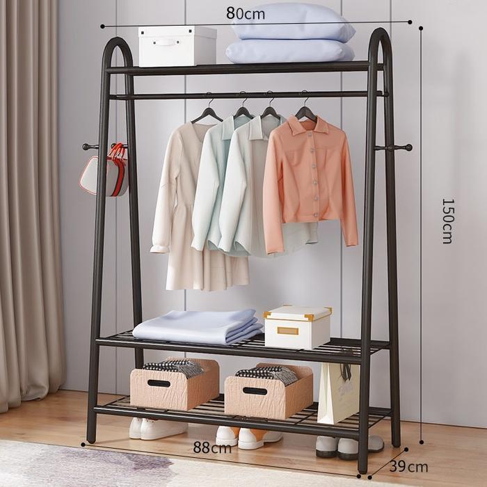Rak Gantungan Baju Besi Big Standing Hanger Stand Pakaian Tas Sepatu - 2 Ambal Putih