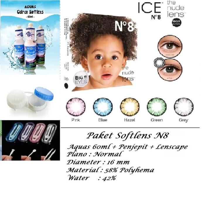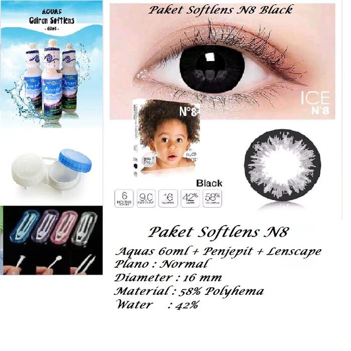 PAKET 3IN1 LENSA MATA ICE N8 BABY EYESS 16MM (LENSACAIRAN DAN PENJEPIT) - Paket N8 Black