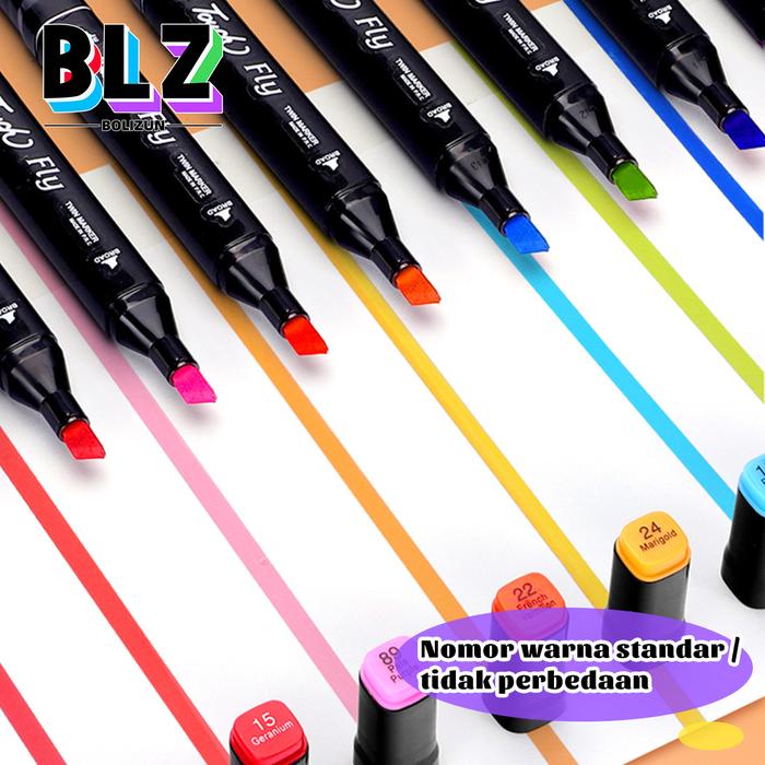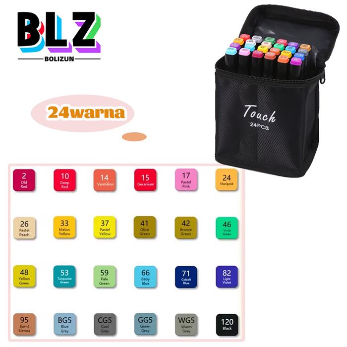 BOLIZUN 2 in 1 Spidol dan Stabilo Touch Isi 24/36/48/60/80 Warna Dual Side Fine Art Brush Pen Sketsa - 24 Warna