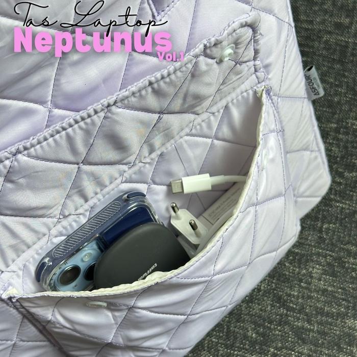 Asfour Neptunus V1 - Tas Laptop 15 inch Puffy Diamond Puffy Parasut Kanvas - Hitam Glossy