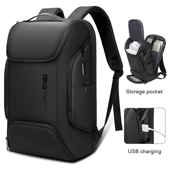 BG7267 Bange Tas Ransel pria Laptop Kerja Backpack USB 15.6 Inch Hitam - Hitam