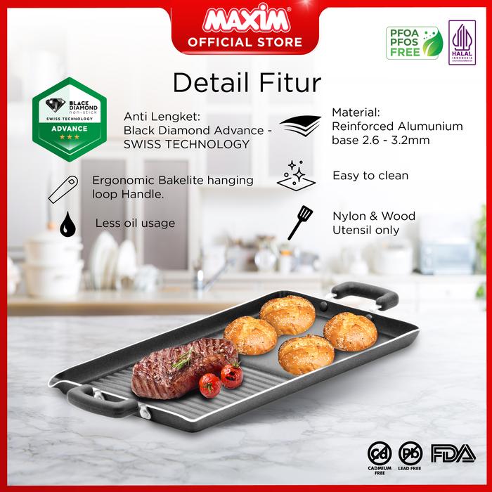 Maxim Grill Alat Pemanggang Teflon Anti Lengket 18x10 Double Burner Grill