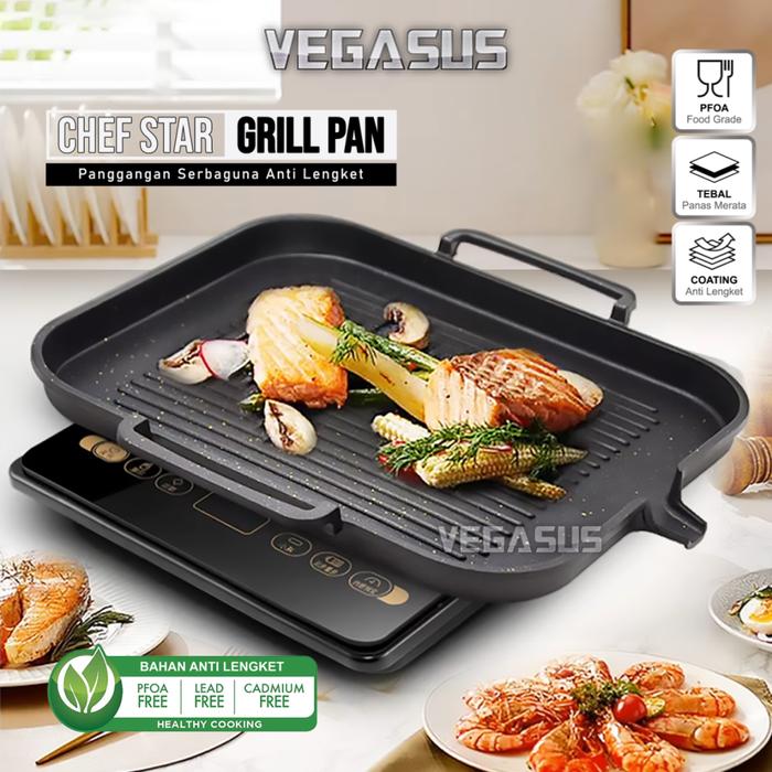 CHEFSTAR grill pan korea anti lengket marble alat panggang panci tebal