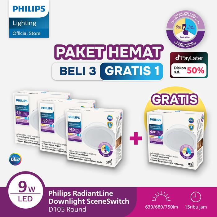 Beli 3 Dapat 4 Lampu Philips RadiantLine Downlight SceneSwitch 9W D105 3 Warna