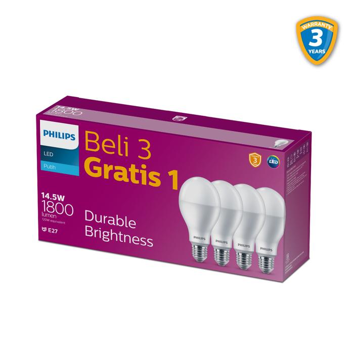 Lampu Philips Multipack Bohlam LED Bulb 14.5W E27 A67 6500K Cahaya Putih