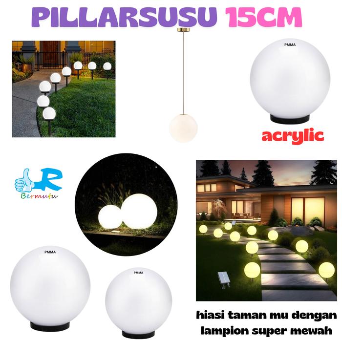 15cm Kap Lampu Taman Bulat E27 6 Inch Pilar Acrylic Bola Susu Outdoor Merah