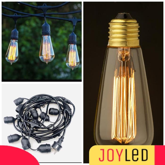 PAKET Lampu Gantung 10 METER 10 FITING + 10 BOHLAM FILAMEN 4 WATT ST64 Kuning - KABEL GANTUNG 10M/10F+ST64