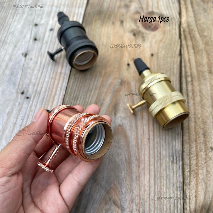 Fiting lampu gantung e27 aluminium gold hitam doff rose gold on off putar kosongan tanpa kabel kop bohlam - Gold