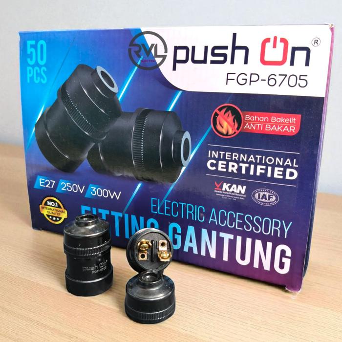 Paket 50 Pcs PUSH ON Fiting Lampu Gantung Model Broco - Hitam - Hitam