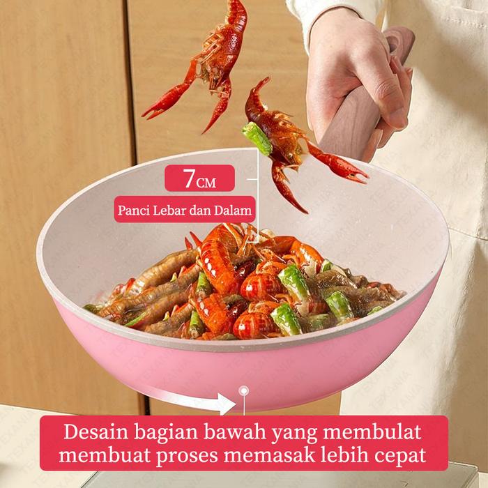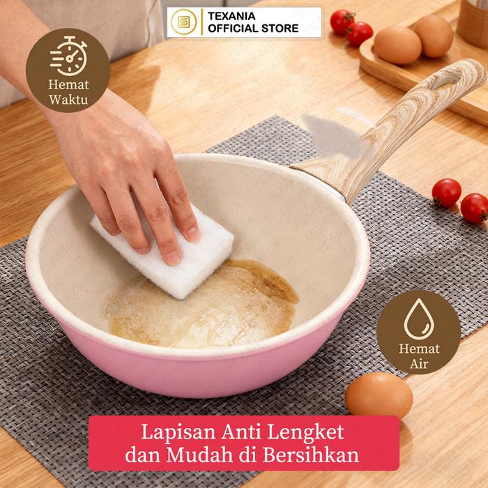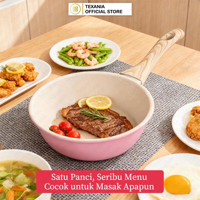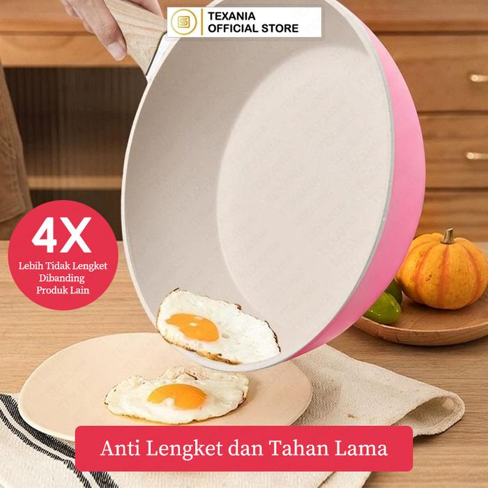 EKSLUSIF BABYOLIV TEXANIA Wajan Anti Lengket Diameter 20cm Gagang Kayu Lembut Tahan Panas Wajan Anti