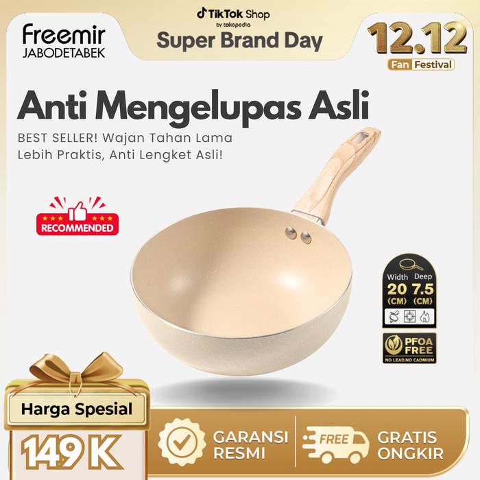 BRAND freemir Wajan Cekung Beige 20 cm Penggorengan PFOA Free Set Wajan Wajan Anti Lengket Wajan