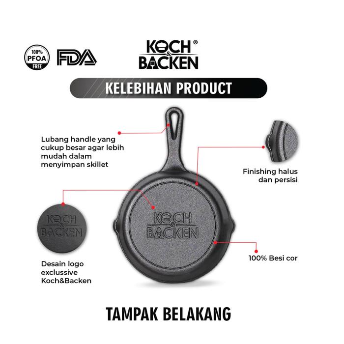 KOCH&BACKEN Nitriding Pre-seasoned Cast Iron Skillet Fry Pan 15cm - Wajan Panggangan Besi Cor Anti