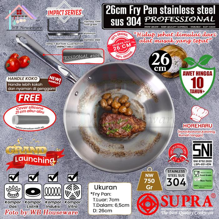 SUPRA NEW Fry pan 26cm stainless steel SUS 304 impact bottom professional cookware series new handle