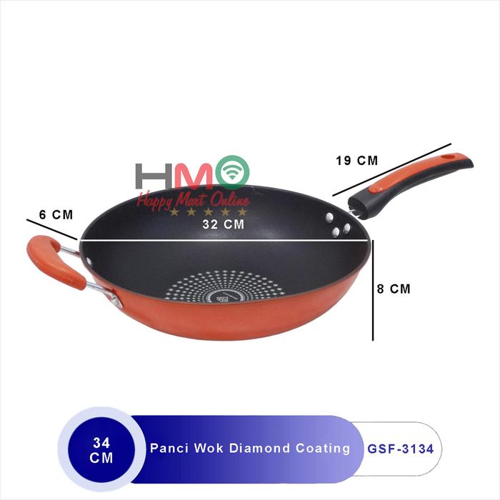 Panci Wajan Anti Lengket Batu Medis Ukuran 30 32 34 CM Wajan Diamond Non Stick