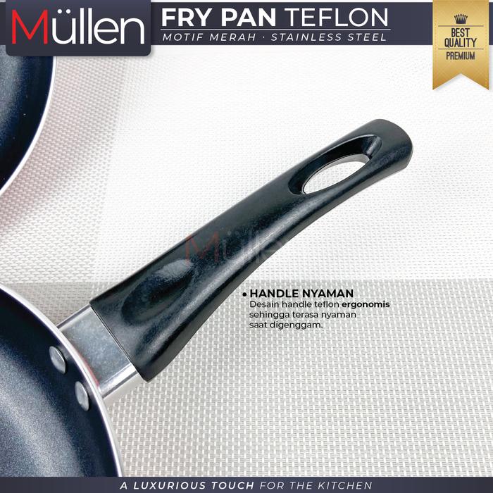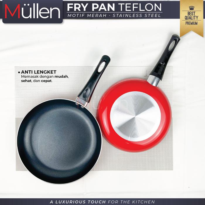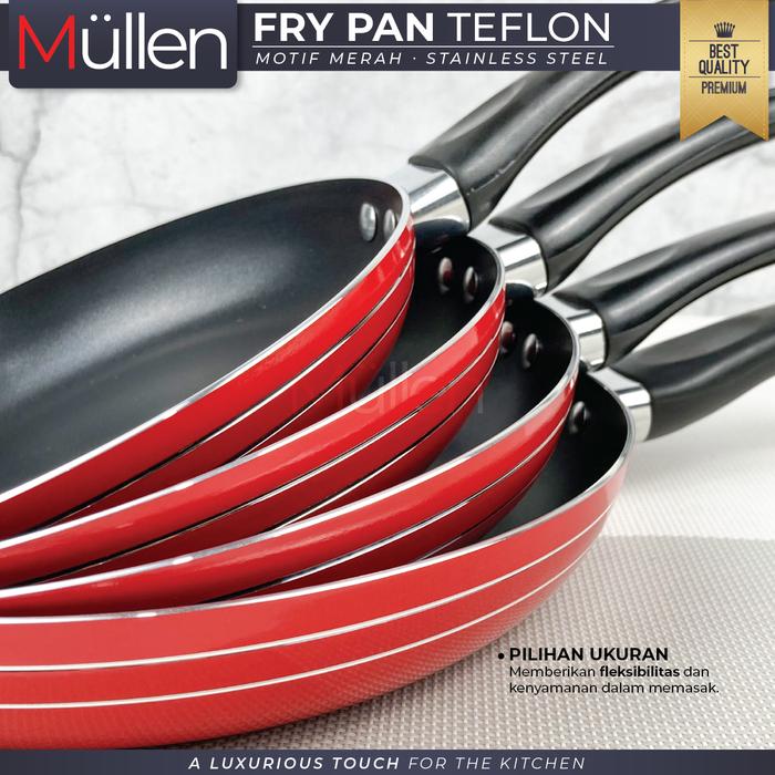 SPECIAL Mullen - Red Fry Pan Tanpa Tutup Anti Lengket Kitchenware Ukuran 20/22/24/26 cm Teflon