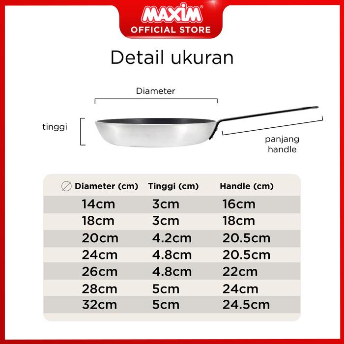 Maxim Pro Wajan Teflon Anti Lengket 14cm 18cm 20cm 24cm 26cm 28cm 32cm Frypan