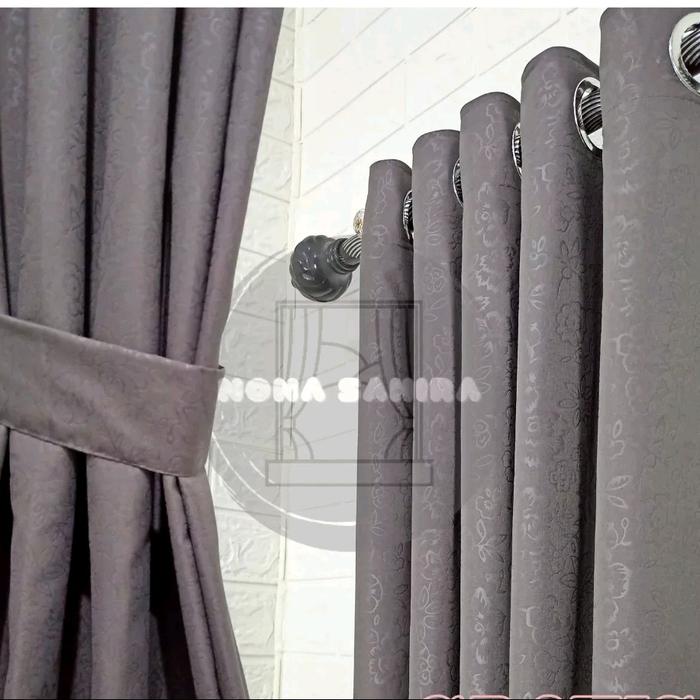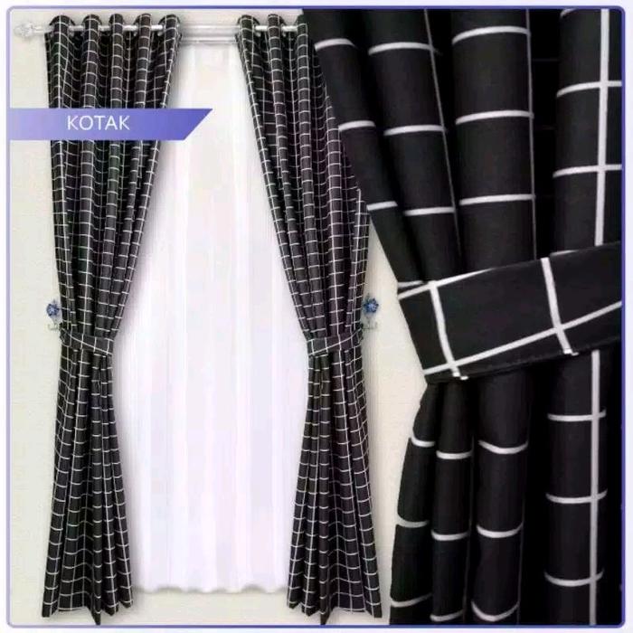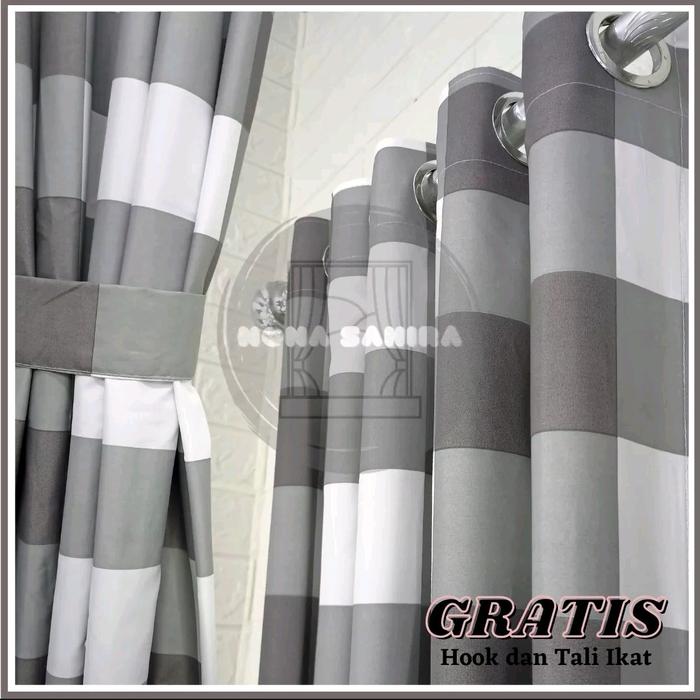 Gorden Pendek Jendela Smokringg Ring 10 Gorden Jendela Kamar Dan Jendela Tamu Kain Katun Curtain - Pendek Kotak Cream