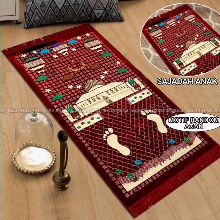 Sajadah Anak Turki Beludru Lembut Ukuran 53x105cm Dengan Warna Bulu Cerah