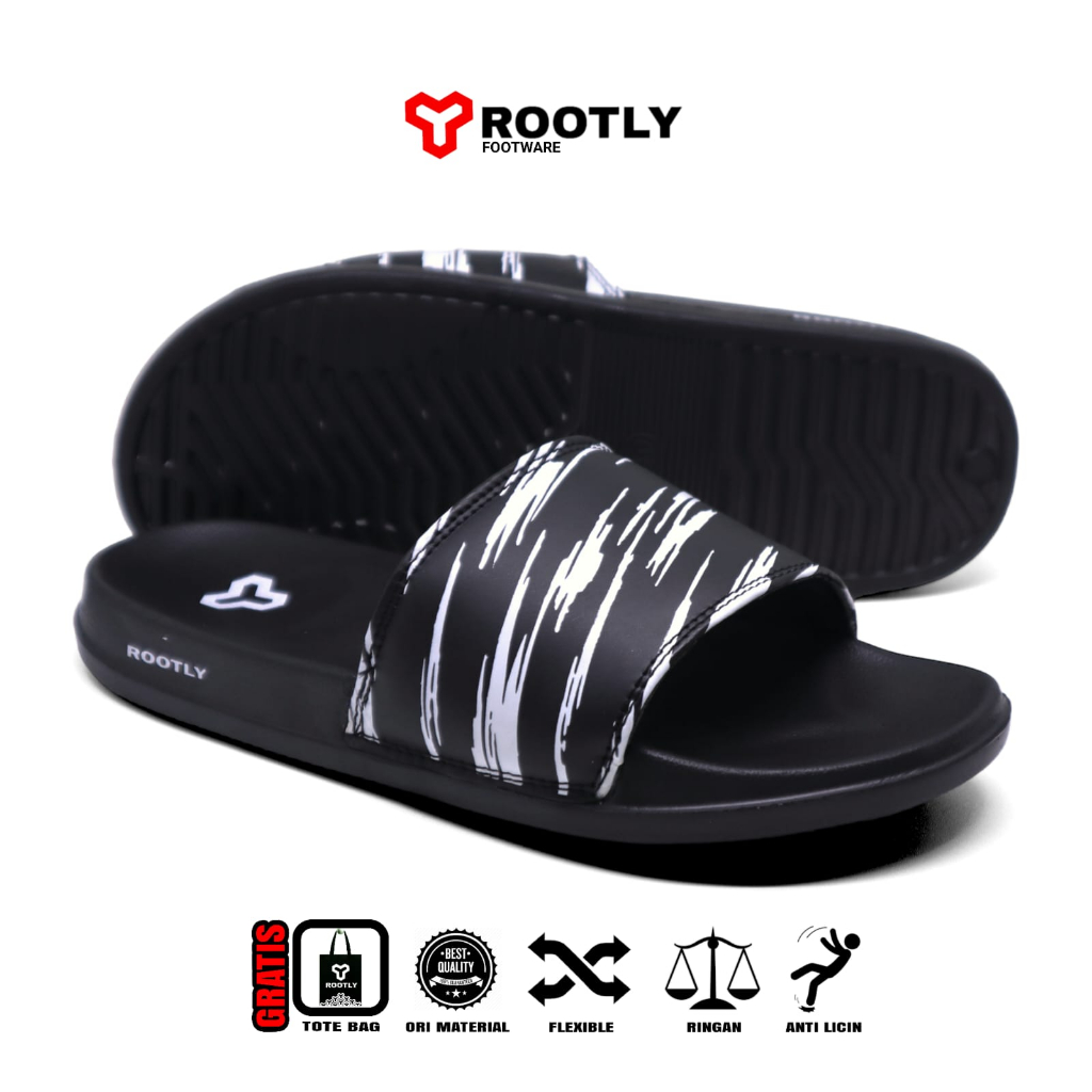 Rootly - Sandal Pria Street Selop Slid-on Sliper Corak Black
