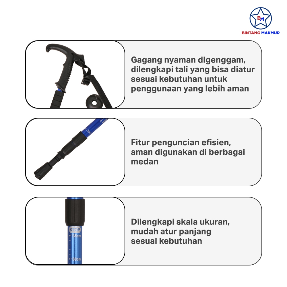 Tongkat Hiking Gunung Tracking Trekking Pole Anti Slip 135 CM
