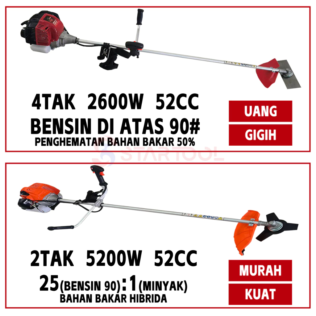 Reaim Mesin Potong Rumput 52CC 5200W 2 Tak 4 Tak 10000R/M 1.2L brush cutter 4 tak Gendong Bensin 90 Powerfull Portable B